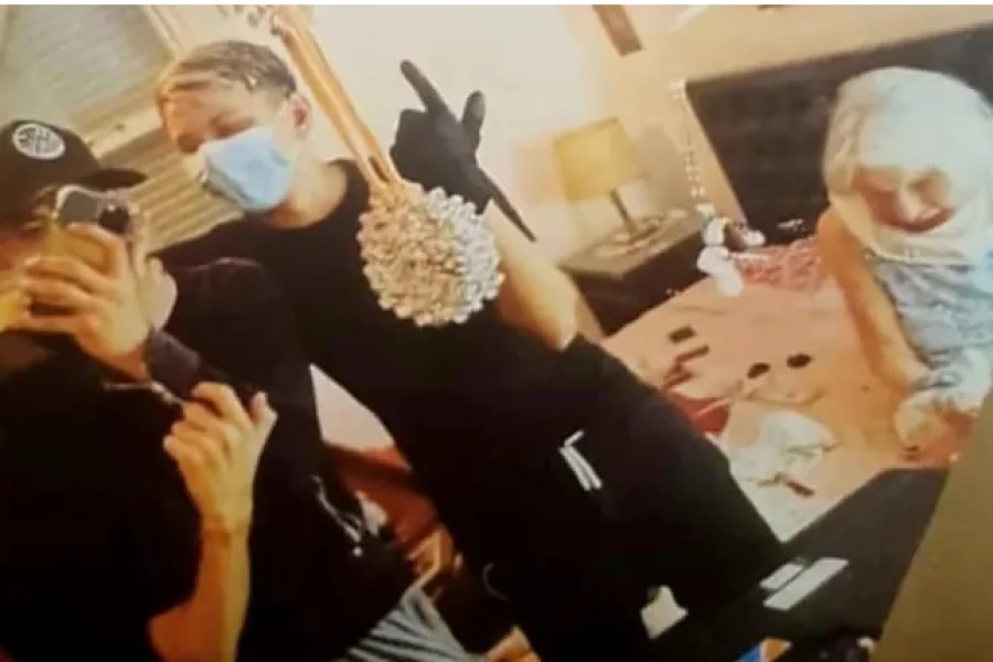 Durante el transcurso del robo, tres de los cuatro ladrones se sacaron una foto frente a un espejo de la casa. En la misma, se ve a la mujer de 92 años, sentada en la cama, con cara de preocupación y muy cerca de los delincuentes.