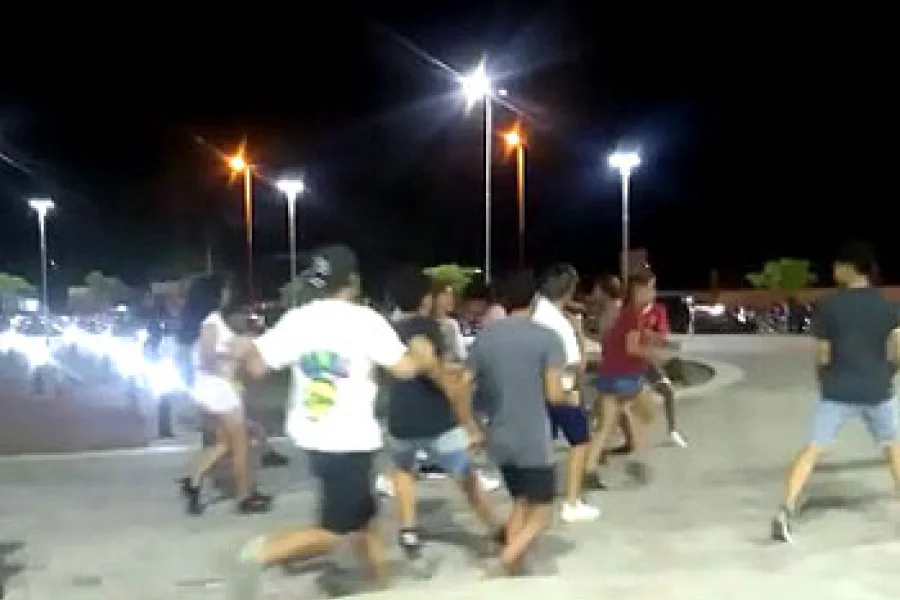 Ocurrió en la noche de este domingo en el Parque de la Juventudes, cuando de la nada aparecieron dos bandas integradas en su mayoría por adolescentes y comenzaron a pelear en el interior del espacio ubicado al frente de la Universidad Nacional de La Rioja y provocaron una verdadera batalla campal, en la que en medio quedaron decenas de familias que aprovechaban el fresco de la noche para salir con sus hijos.