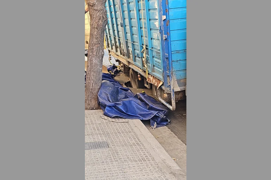 El hecho ocurrió por la calle Santiago del Estero, antes de Bazán y Bustos. Un camión que transportaba colchones se hundió en el asfalto y debió ser retirado por una máquina.