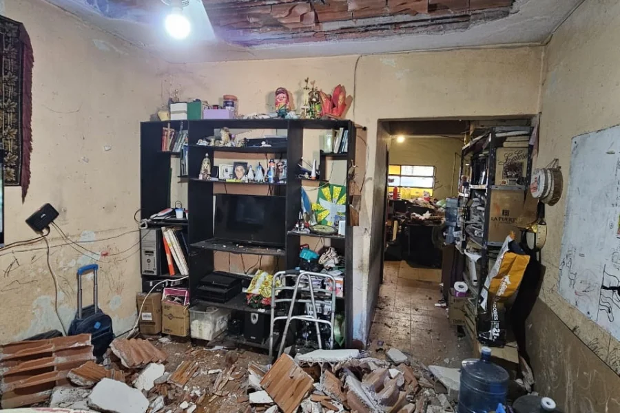 Siendo las 16.17 del viernes, desde Bomberos informaron sobre el desprendimiento de mampostería de una vivienda ubicada por calle 1 de marzo. En el lugar se encontraba Yolanda González de 85 años, quien lo hacía en el comedor de la vivienda junto con su hija Rosa Ana Moreno de 45 años, quienes sufrieron lesiones que derivaron en su traslado al hospital Enrique Vera Barros.