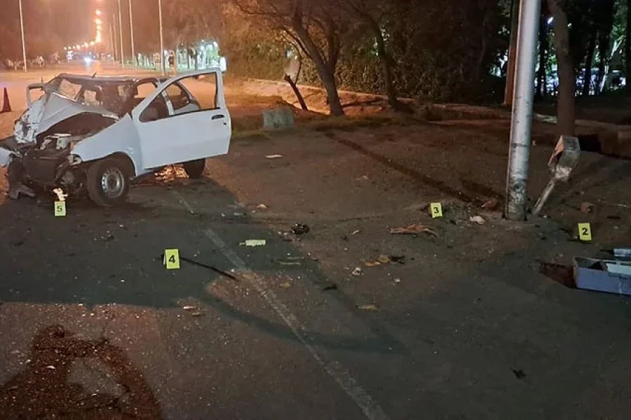 A raíz de esto es que el vehículo fue a parar directamente contra una pilastra de luz ubicada en la banquina sur de la calle. Luego de impactar violentamente, el auto quedó en el medio de la arteria con serios daños en el frente y sobre el costado derecho.