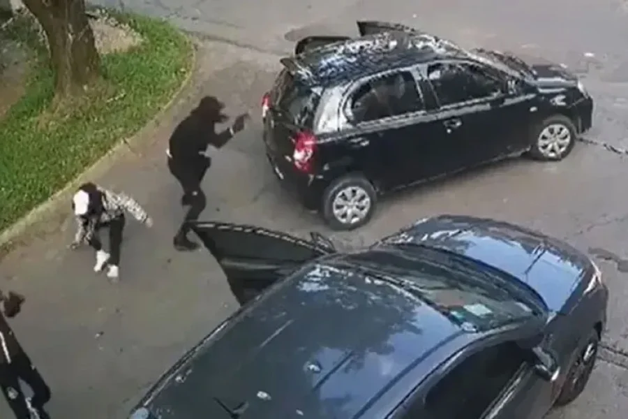 Las imágenes de las cámaras de seguridad captaron el momento en el cual cuatro delincuentes se bajaron de un Toyota Etios y apuntaron hacia el interior del vehículo donde estaba el gendarme, junto a un compañero de la fuerza.