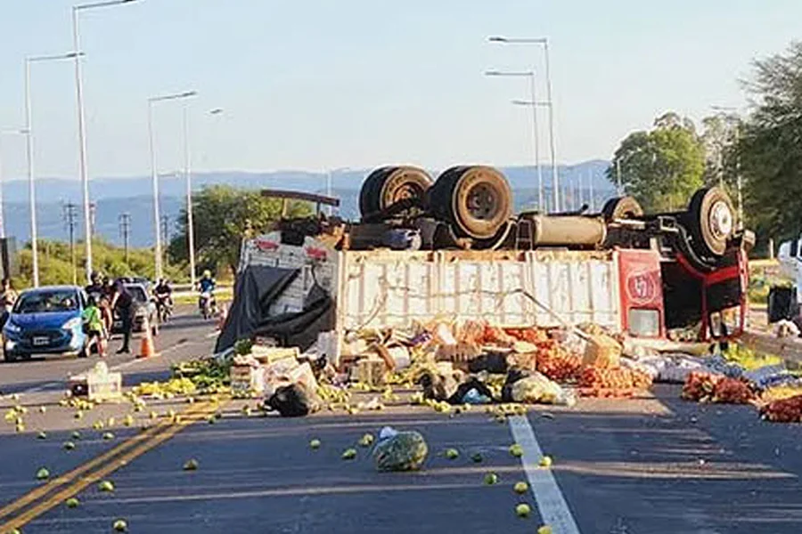 Según informó la División Relaciones Institucionales de la Policía, un camión Mercedes Benz, al mando de Rubén Darío Rodríguez (42), quien iba en compañía de Alejandro Ranieri Santochi (45), Fabricio Eusebio Romero Páez (28) y Carlos Alberto Vera Aveni (19), todos con domicilio en Aimogasta ( La Rioja) terminó volcando sobre la cinta asfáltica.