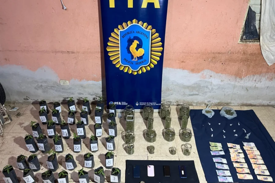 Con las pruebas recolectadas, la Justicia autorizó el allanamiento de la propiedad ubicada en el mencionado barrio. En el procedimiento, los agentes detuvieron a los dos sospechosos y secuestraron una considerable cantidad de marihuana que se encontraba en el lugar.