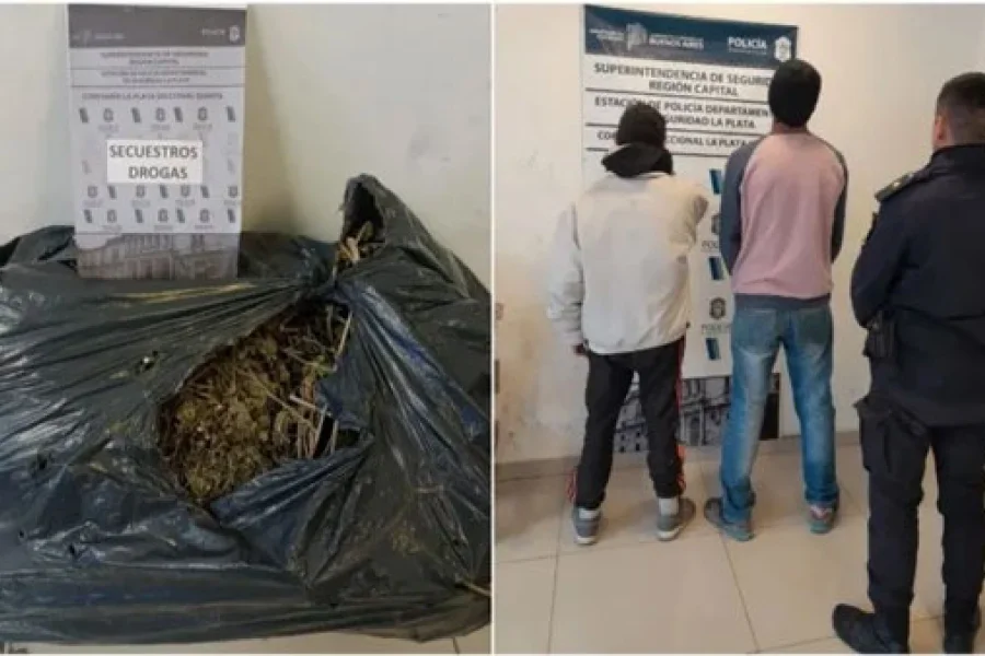 Dos hombres que caminaban con una bolsa de consorcio repleta de marihuana, con un peso total de cuatro kilos, fueron detenidos en La Plata en plena vía pública.