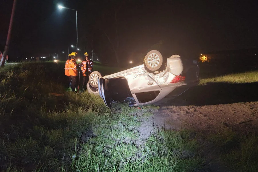 El fuerte choque derivó en un posterior vuelco en la noche del sábado cuando una mujer acompañada de una menor de edad circulaban en un Chevrolet Prisma y fueron chocados por un Peugeot 208, conducido por Mario Roberto de 40 años, provocando el posterior vuelco del Chevrolet.