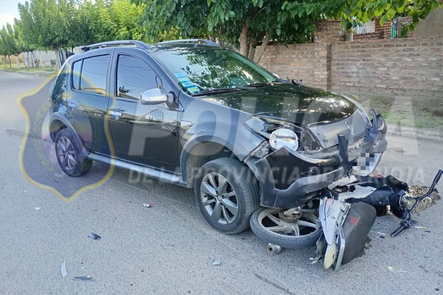 En donde un automóvil conducido por un hombre de apellido Acosta de 30 años del Barrio La Usina, lo hacía circulando por la primera arteria en mención con sentido cardinal de Sur a Norte y al llegar a intersección con calle Colón, cuando por razones que se tratan de establecer se produjo una colisión con una motocicleta al mando de un masculino de apellido Michel del Barrio Alto Verde, quién lo hacía acompañado de una menor de edad.