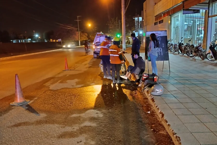 Por otro lado, a las 20:30, Bomberos Águilas De Acero se dirigieron por Avenida 2 de Abril, más precisamente en frente del supermercado Oscar, a un siniestro vial, en el que Bruno Mercado, de 20 años de edad, con domicilio en el barrio Facundo Quiroga, quien circulaba en una motocicleta Honda Biz, cuando por razones que se tratan de establecer habría perdido el control del rodando provocándole una caída pesadamente a la cinta asfáltica.