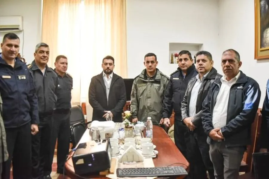 Allí, las autoridades provinciales se reunieron con el Comandante Principal, Jefe del Escuadrón 24, Cesar Adrian Balderrama, para avanzar en acciones y modalidades de trabajo articuladas entre las fuerzas provinciales y federales en la lucha contra el narcotráfico.