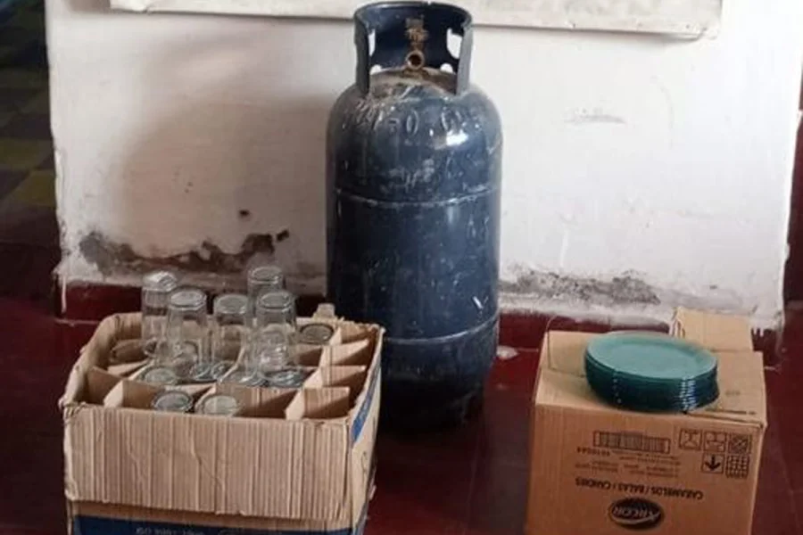 Los elementos recuperados que se tratan de: Una caja con treinta platos de vidrio color verde; Una caja con 20 vasos de vidrio color blanco y una garrafa de 15kg color gris.