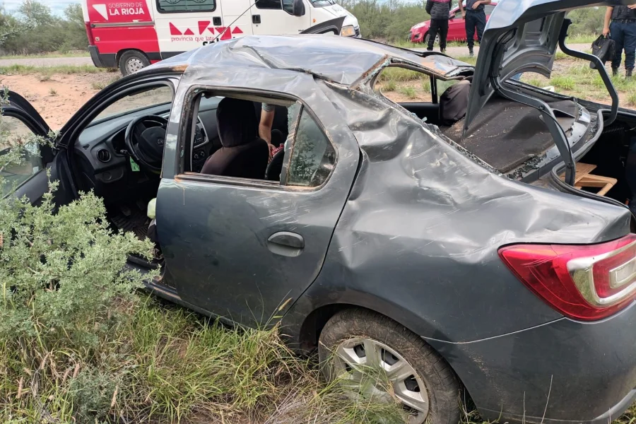 Distante a 25 km de la localidad de Ulapes, un automóvil marca Renault, modelo Logan, color gris conducido por Marcos Nicolás Pastorino de 49 años con domicilio en La Plata Provincia de Buenos Aires, junto a su esposa y su pequeña hija sufrieron un espectacular vuelco, que solo dejo como saldo daños materiales y un gran susto.-