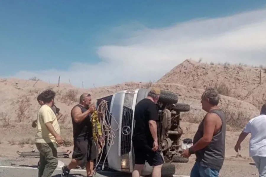 Por el relato de testigos que pasaban por el lugar del vuelco, se trata de una familia de apellido Bernal. Aparentemente la conductora del utilitario marca Mecedes Benz mordió la banquina y volcó.
