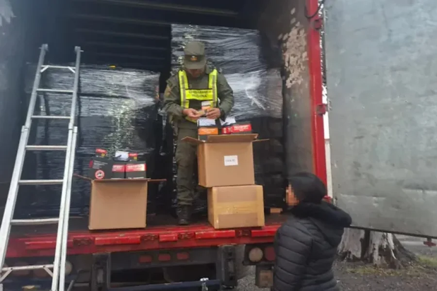 Al momento de revisar el contenido del camión, personal de la Fuerza constató la existencia de “cinco bultos con mercadería de origen extranjero sin la correspondiente documentación aduanera en infracción a la Ley 22.415”.