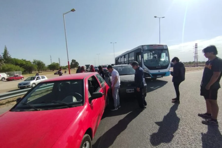 En la mañana de este martes se registró un choque en cadena en el ingreso a la ciudad capital por ruta 38 y Avenida Félix de la Colina. El siniestro tuvo como protagonistas a los conductores de un auto, una camioneta y un colectivo de Rioja Bus interurbano.