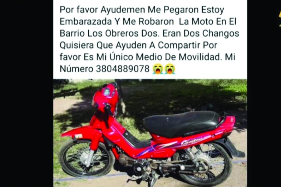 La joven contó que su hermana, que cursa el cuarto mes de su embarazo, iba en una motocicleta Yamaha Crypton de color rojo, cuando a la altura del barrio Los Obreros, pasó por un sector donde había un grupo de chicos. Dos de ellos que iban en una motocicleta Yahama FZ, la siguieron, la encerraron e intentaron arrebatarla.