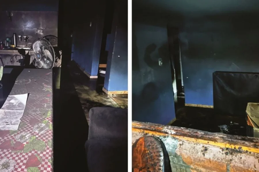 El foco ígneo, que se originó aparentemente por un corto circuito en una de las habitaciones, causó daños parciales en la vivienda.