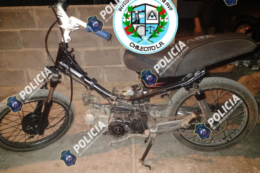 El operativo del Departamento de Investigaciones de Chilecito se inició este martes a la noche, cuando los efectivos divisaron una motocicleta 110cc en aparente estado de abandono, sin plásticos ni dominio visible. Mientras se intentaba identificar el rodado, una vecina del lugar se presentó y alegó que pertenecía a su hermano, aunque no poseían documentación alguna.