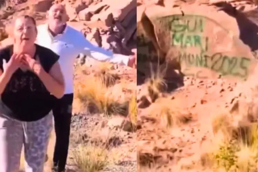 Después del escándalo de los turistas que vandalizaron unas rocas en Potrerillos, la Justicia Contravencional inició una búsqueda para dar con un grupo de adultos mayores que con aerosoles dejaron sus nombres impresos y estableció que son de Buenos Aires. Ellos se identificaron como Stela, Grachu, Gui, Mari y Moni.