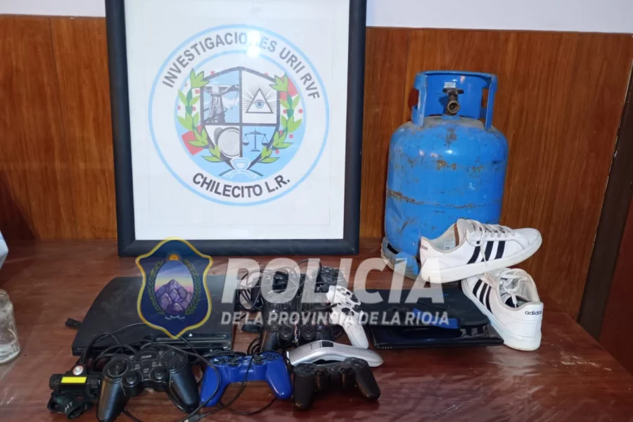 Los sumariantes del Departamento de Investigaciones de Chilecito, trabajaron en los hechos denunciados y ejecutaron una orden judicial librada para secuestro y Detención. La medidas judiciales, dieron sus frutos en un procedimiento que se dio en un domicilio del B° Parque Norte de la ciudad de Chilecito, secuestrando la policia los siguientes elementos; (01) PlayStation 3, (02) Joystick; (02) garrafas de 10 kg.; (01) teléfono celular, (01) tablet,(01) computadora portátil, (01) amoladora, (01) taladro, (01) taladro (01) una pistola de calor , dinero en efectivo $50.000, (01) par de Zapatillas, (01) par de botines, (01) par de parlantes, (01) bolso de color negro.