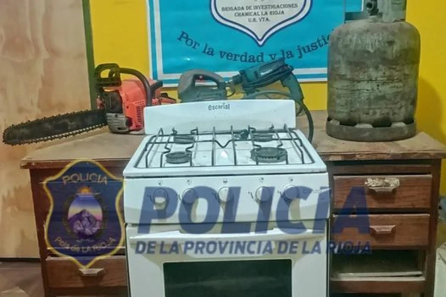 Los efectivos policiales de la Brigada de Investigaciones de Chamical recuperaron  una cocina, una garrafa, una motosierra, una sierra circular y un taladro percutor.