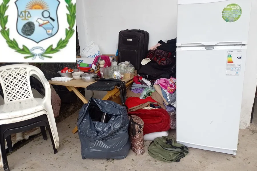 El allanamiento se realizó este domingo, y como resultado de la requisa domiciliaria procedieron a secuestrar una (01) toalla de mano de color naranja; dos (02) fundas de almohada de color bordo; una (01) manta de color beige; una (01) manta de color violeta; un (01) acolchado de 2 ½ plazas de color bordo; una (01) manta tejida de color beige; un (01) acolchado de color marrón y rojo de 2 ½ plazas; un (01) pantalón de algodón tipo cargo de color beige; un (01) saco de color azul; una (01) camisa mangas largas de color blanca con rayas negras; una (01) campera marca adidas con capucha, talle XL, de color azul y gris; un (01) repasador floreado; una (01) cartera marca J-RUM; (01) una riñonera de color negro; un (01) porta equipo de mates de color animal print; una (01) remera de color violeta negra roja y blanca; una (01) musculosa de color rosado; un (01) juego de mate nuevo; un (01) rayador metálico; tres (03) taper de color rosado; una (01) olla con tapa de tamaño chico; una (01) budinera de tamaño chico; un (01) cepillo de ropa; un taper redondo con tapa; tres (03) compoteras de material porcelana; doce (12) tenedores cabo de madera; diez (10) cuchillos cabo de madera; dos (02) cuchillos de cocina grandes, uno cabo de madera y el otro cabo negro; cuatro (04) platos hondos; dos (02) platos playos; una (01) ensaladera de vidrio; tres (03) cucharas grandes, una cabo de madera y el resto metálicas; tres (03) cucharitas, una cabo de madera y las restante de metal; una (01) mochila de color verde con la leyenda “gobierno de san juan”; una (01) cuchara de madera; una (01) pinza de cocina, metalica; una (01) espátula de color blanco de plástico; una (01) botella de agua de color morado; un (01) yerbero de plástico; un (01) exprimidor de color rojo; una (01) taza de color verde de plástico; un (01) pantalón de material jeans, talle 48 de color negro marca SCOMBRO; un (01) tapado con capucha de color negro, talle 4 xl, de dama; un (01) tapado de color negro con capucha; una (01) valija marca TRAVELLINE, de color negro tamaño chico; una (01) bolsa con vasos de telgopor y plásticos; una (01) polera de color violeta, tejida; un (01) pantalón de algodón de color gris; una (01) calza de color gris; un (01) sweater de color rojo con detalles de piedras brillantes; una (01) blusa floreada de color negro y violeta; un pañuelo de color beige; una (01) camisa floreada; una (01) musculosa floreada; un (01) pantalón de color beige; un (01) pantalón de jeans marca atrapame de color azul; un (01) caballete de madera; una placa de madera de 1,00 metro al cuadrado; un (01) pantalón de vestir de color rojo marca ARYE talle 46; una (01) camiseta de color blanco; una (01) camiseta con botones de color gris; un (01) heladera marca estándar electric, serie n° 04377966, modelo 2F 1200Ba, de color blanco; una (01) remera floreada talle L; un (01) sweater color negro con rayas blancas en su parte inferior; un (01 ) pantalón joguins de color negro; un (01) pantalón joguins de color gris; un (01) pantalón jeans talle 50 de color negro marca cenitho; un (01) pantalón palazo de color rojo; un (01) pantalón de joguins de color azul, Un (01) par de medias tipo cordero de color marrón claro; un (01) par de botas de color negro; una (01) manta de color claro; un (01) par de zapatillas marca ELIA de color negro y rosado, n° 4; un (01) par de zapatillas marca nex balance, de tela de color negro; dos (01) sillas de plástico de color negro; un (01) pantalón de jeans de color negro marca gemo; una (01) mochila marca fashon de color blanco de material cuerina; una (01) campera marca puma con capucha de color negro, rosado y gris; una (01) blusa de color rojo y morado; un (01) frasco de vidrio; una (01) gargantilla de fantasía; dos (02) cucharas de cabo de madera; seis (06) vasos de vidrio.