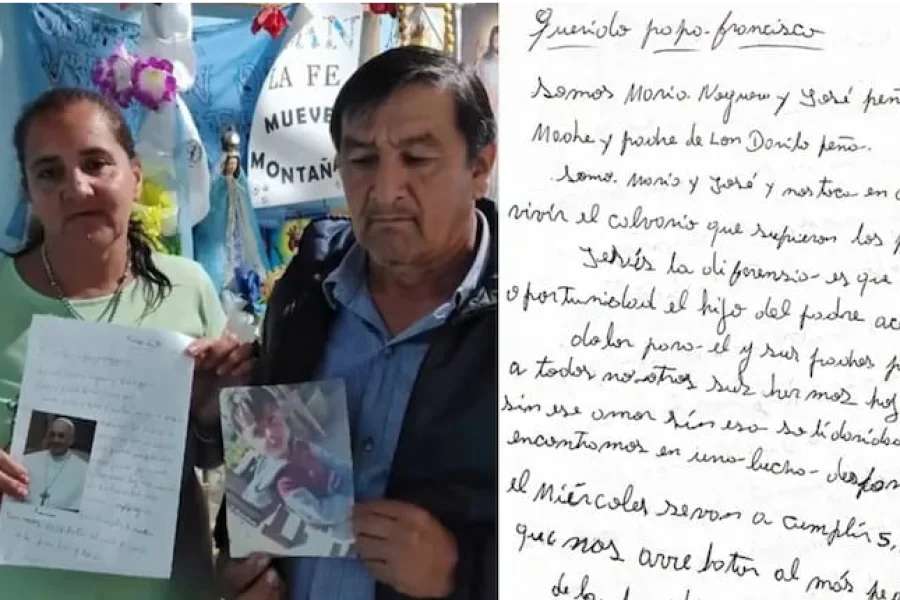 A cinco meses de la desaparición de Loan Danilo Peña, el nene de 5 años que fue visto por última vez en la casa de su abuela en Corrientes, sus papás le escribieron una carta al Papa Francisco y le pidieron que los reciba en el Vaticano.