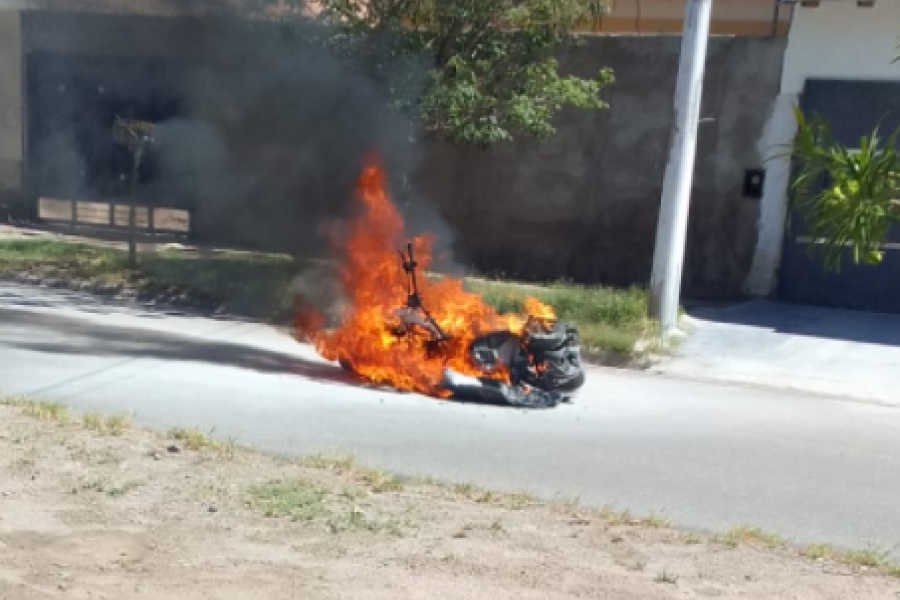 La mujer pidió auxilio para sofocar la llamas, pero ya era tarde, el fuego habia tomado y destrozado todo la motocicleta.
