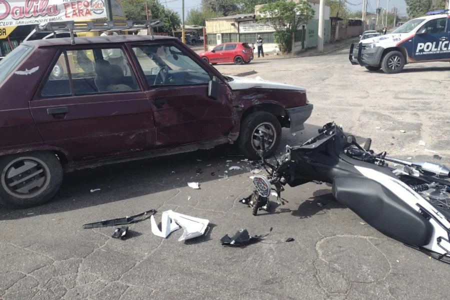 Ocurrió en Avenida Juan Manuel de Rosas y El Portezuelo, donde chocaron un automóvil y una motocicleta. El conductor del rodado menor sufrió lesiones importantes al impactar contra el parabrisas, por lo que fue trasladado al hospital.