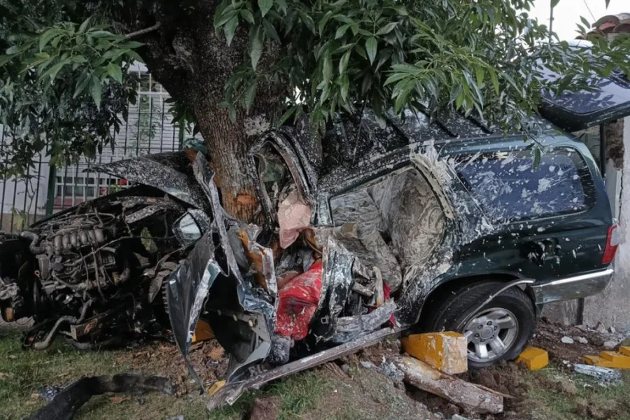 En ese momento comenzó una persecución la cual finalizó a unos siete kilómetros de donde fuera cometido el robo, en el cruce de las calles Ituzaingó y Don Bosco, en la localidad de Bernal, cuando perdieron el control del vehículo y chocaron con un árbol.