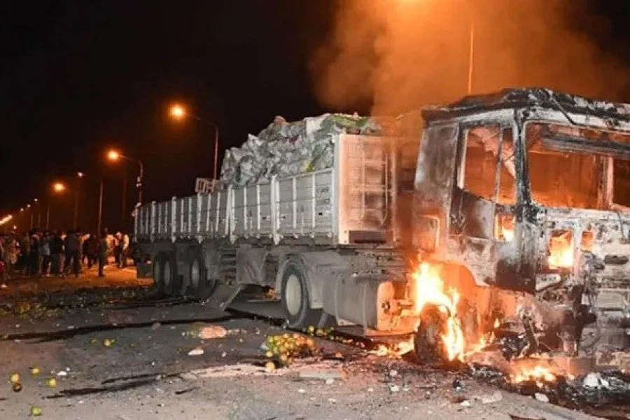 La violencia alcanzó su punto máximo cuando, en medio del caos, un grupo de personas incendió el camión involucrado en el accidente y sustrajo la mercadería que transportaba, entre ellos frutas y verduras.