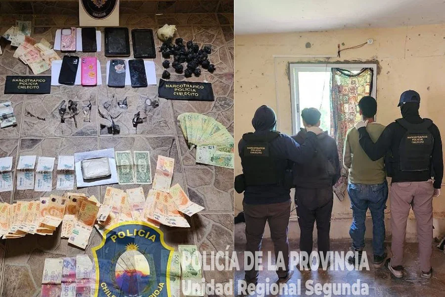 Dos hombres fueron detenidos este sábado en la ciudad de Chilecito, en el marco de un amplio operativo antidrogas que incluyó allanamientos simultáneos en domicilios de los barrios Centro y Las Torres.
