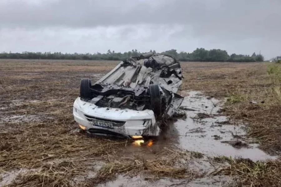 El accidente ocurrió pasadas las 10 de la mañana en la ruta nacional número 9, en las inmediaciones de la localidad tucumana de Monte Bello. Fue en el kilómetro 1.246 y producto del impacto el Chevrolet Prisma quedó sobre el campo volcado hacia arriba.