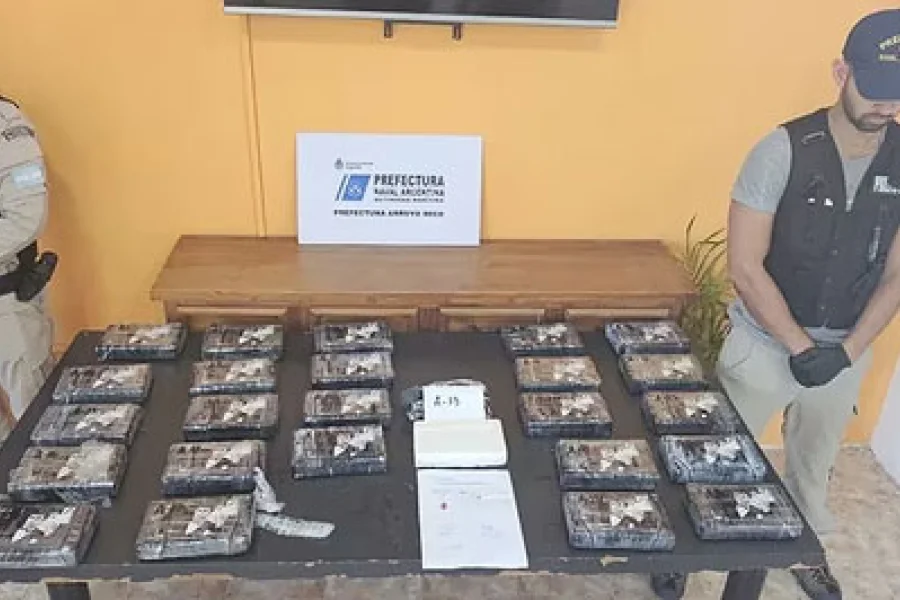 En línea con la investigación, prefectos encontraron en jurisdicción de Arroyo Seco otro bulto más con 25 ladrillos de cocaína que dieron un pesaje de 27 kilos. Tenían los mismos sellos, por lo que se presume que esa droga fue río abajo.