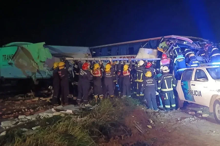 Las primeras informaciones señalan que el micro se dirigía hacía Buenos Aires y chocó de frente contra el camión que iba en sentido contrario.