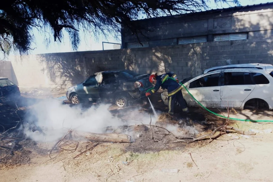 El siniestro comenzó en un montículo de ramas secas y derivó en la quema parcial de un vehículo secuestrado que se encontraba en el lugar.