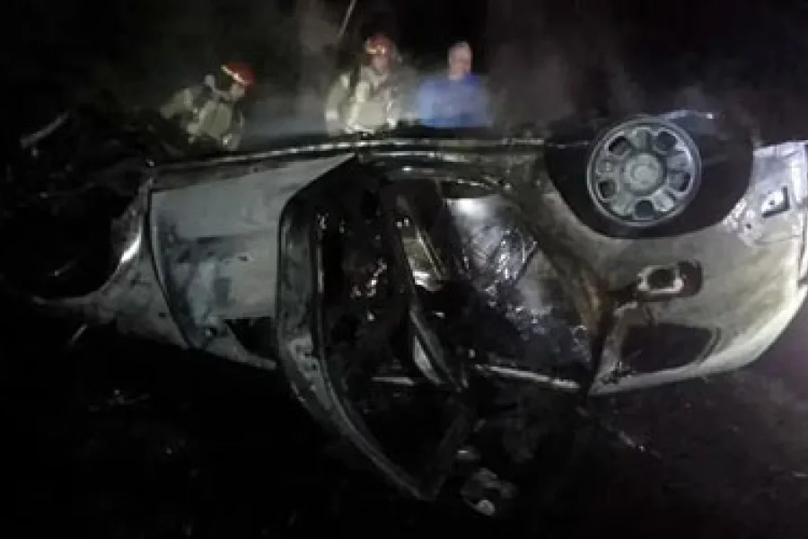 Por razones que son investigadas, un automóvil con cuatro ocupantes volcó y después se incendió.
