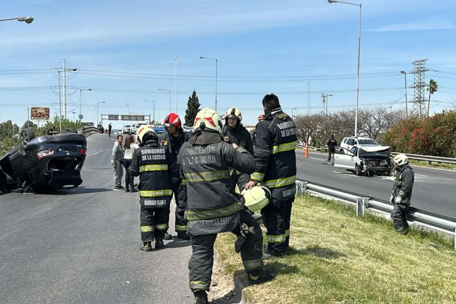 A raíz del impacto, el Volkswagen Vento volcó, mientras que los otros dos rodados terminaron destruidos a un costado de la autovía.