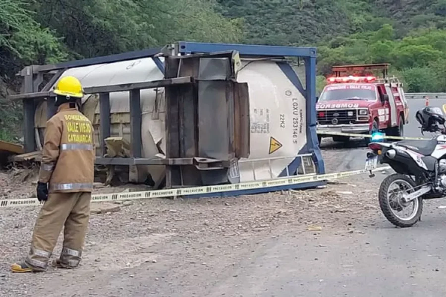 En el lugar, un camión que provenía de Salta volcó su carga al desacoplarse el container en el cual transportaba sulfato de amonio líquido, una sustancia peligrosa e inflamable utilizada en actividad minera.