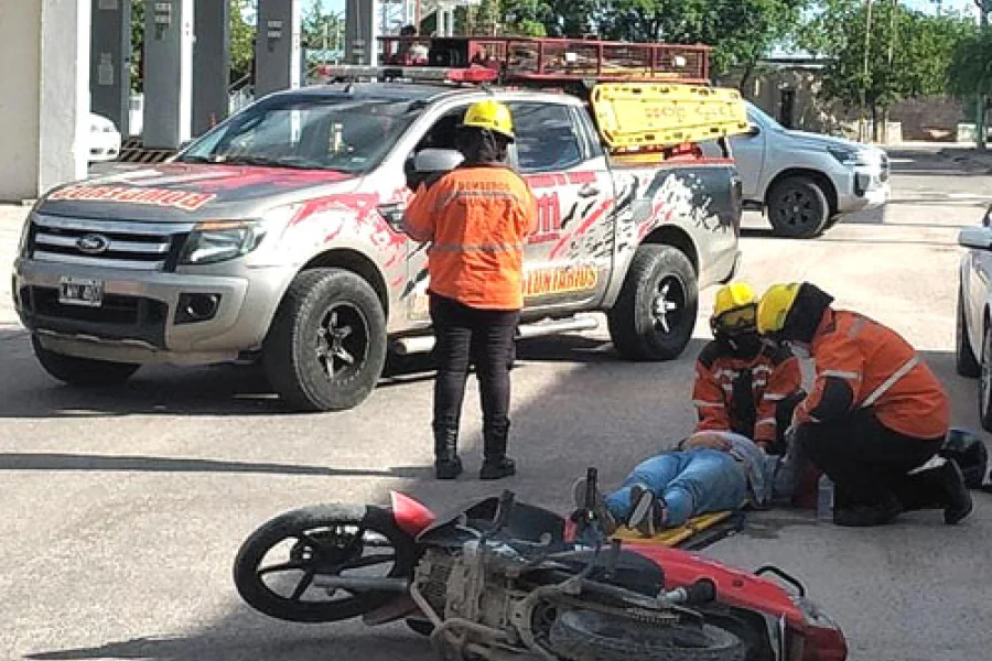 Bomberos Voluntarios Águilas de Acero al llegar al lugar mencionado encuentran a una joven identificada como Noemi Brisa Andrada de 19 años, domiciliada en el barrio Las Margaritas, se conducía en una motocicleta Honda Biz 125Cc, color rojo, por razones que se tratan de establecer la misma impacta con la motocicleta marca Bitz 110cc conducida por el ciudadano Federico Flores de 26 años, domiciliado por el pasaje Tasiuka. Producto del impacto la femenina presentaba escoriaciones en ambas manos, Traumatismo leve en el miembro inferior izquierdo a la altura de la rodilla y traumatismo en la zona lumbar. Mientras que el masculino Flores resultó ileso.
