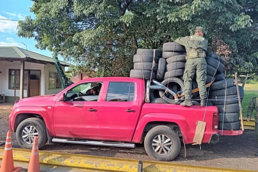 La misma, era conducida por un ciudadano argentino, quien se encontraba acompañado de un menor, según el detalle del parte, se trasladaban desde Puerto Iguazú hasta la ciudad de La Rioja, constatando a simple vista que transportaba una gran cantidad de cubiertas de diferentes marcas y medidas. Las unidades, acondicionadas en el compartimiento de carga, se aseguraban con sogas y sobresalían de los límites del vehículo.