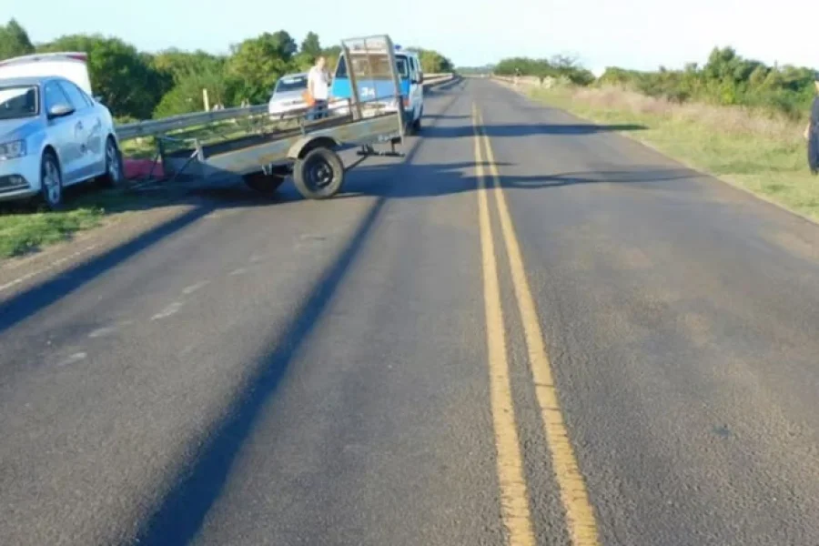 Ambos fueron impactados por un tráiler de un solo eje sin carga encima que se desprendió de una camioneta Chevrolet S-10, que circulaba por la ruta desde la localidad de Pueblo Belgrano hacia la ciudad de Gualeguaychú con cuatro personas a bordo, tres mayores y un menor.