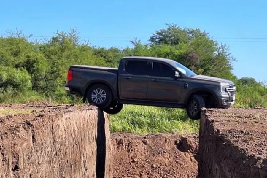 En medio de un viaje por la provincia de Santa Fe, dos cordobeses quedaron al borde del abismo. Pasaron por una construcción mal señalizada y su camioneta “levitó”en una obra y desafió las leyes de la gravedad.
