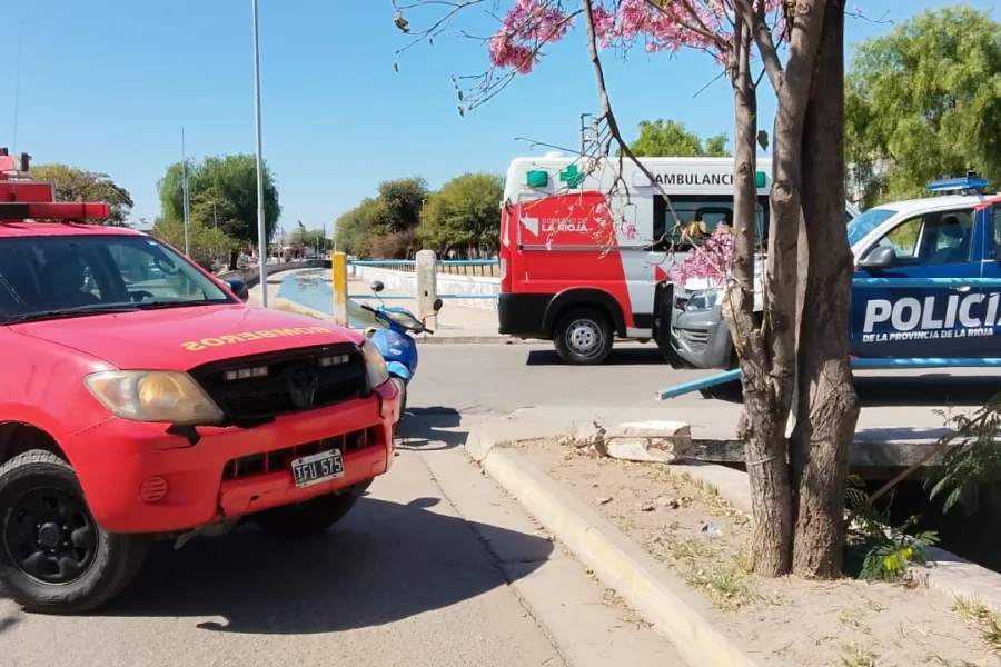 El hecho vial fue a las hora 13:40 por Av. Los Caudillos y Honduras. En el lugar mencionado se encontraba Sandra Almada de 50 años,que se trasladaba en una motocicleta Motomel blitz por calle Honduras y por motivos que se desconocen colisiona con un automóvil Volkswagen Suran, al mando de Andrea Bustamante de 50 años, que lo hacía en compañía de un menor, la cual circulaba por la misma calle.