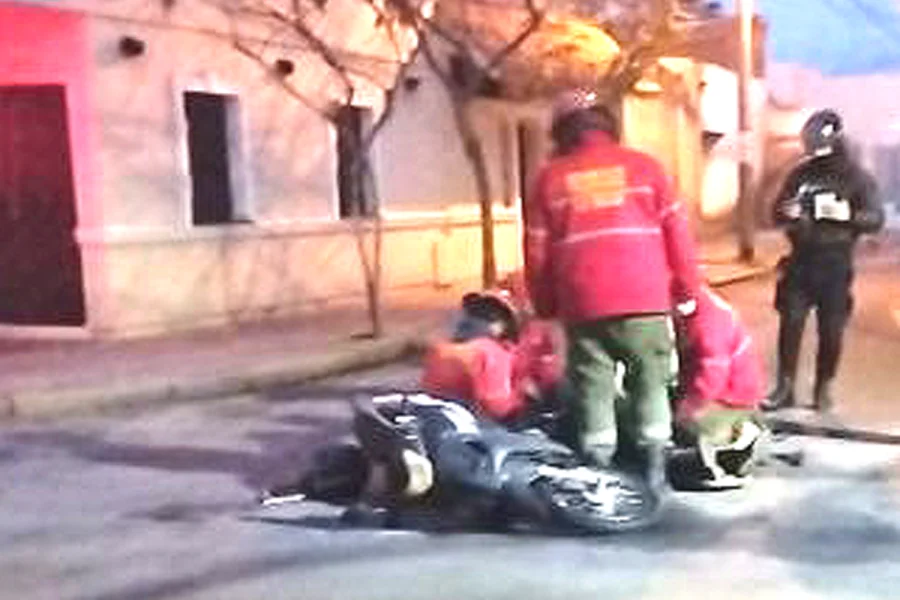 La conductora del rodado menor, de unos 50 años, cayó pesadamente a la cinta asfáltica. Tenía una posible fractura de muñeca y otros golpes, por lo que fue derivada al hospital Vera Barros para una mejor atención.