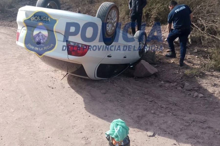 El Hecho ocurrió en la tarde de este viernes en el camino al Dique de Olta ( a 500 mts del Rio Vallecito), dónde un automóvil Volkswagen Voyage conducido por el ciudadano SANCHEZ Juan José de 43 años de edad, domicilio en la Provincia de Mendoza en compañía de una femenina mayor de edad, al ser entrevistado manifiesta que pierde el control del vehículo produciendose el vuelco quedando en posición ivertida.