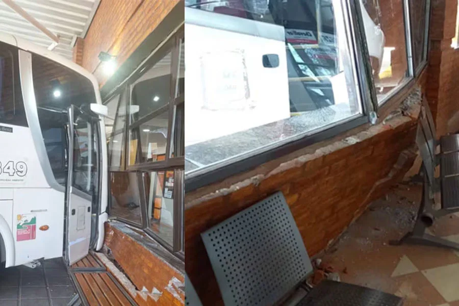 De un momento a otro, el chofer perdió el control del ómnibus e impactó de lleno contra las instalaciones de la terminal. Afortunadamente, no hubo heridos.