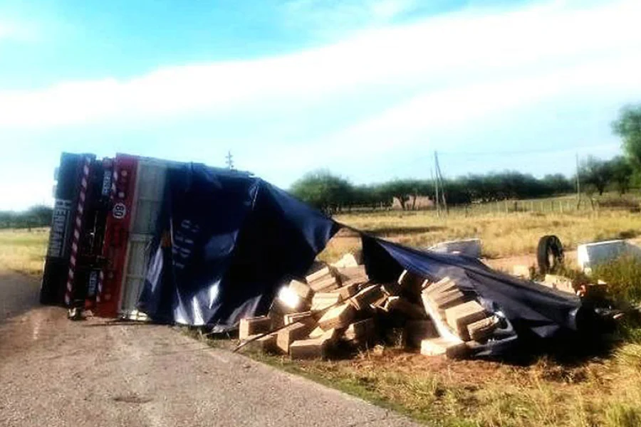 La policia informó que, el camión se desplazaba sobre Ruta Nac. N° 79, procedente de Córdoba y llevaba como destino la provincia de Tucumán donde transportaba galletas de agua.