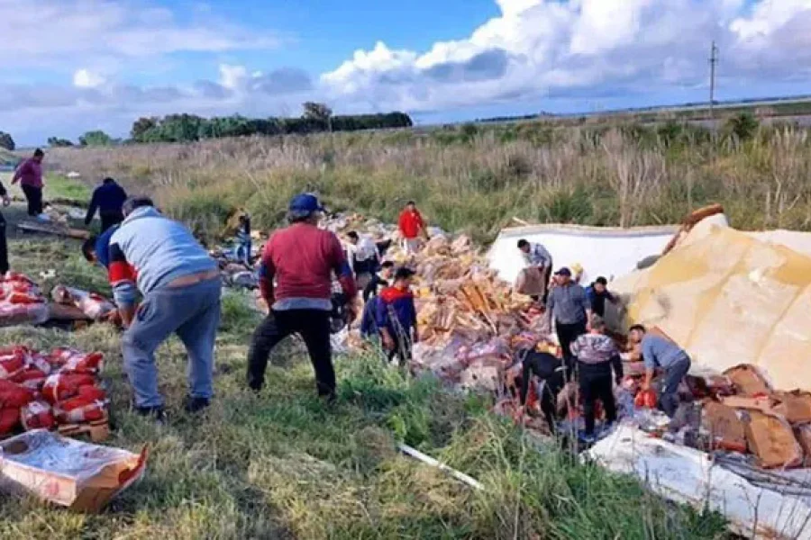 Primero, unos pocos vecinos se acercaron al lugar del accidente y se llevaron algunas piezas de comida. Pero el rumor corrió rápido y en cuestión de minutos comenzaron a llegar decenas de autos, motos y hasta bicicletas para llevarse la mercadería esparcida por la ruta.