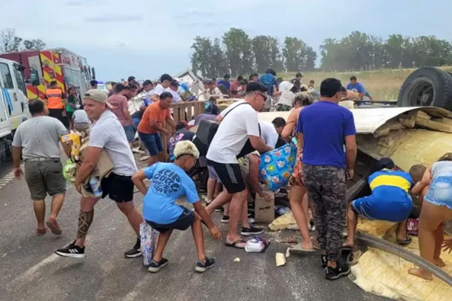 La postal de gente saqueando el cargamento de un camión volcado volvió a repetirse este fin de semana en la localidad bonaerense de Pergamino. Pero esta vez, los vecinos fueron un paso más allá: empezaron a llevarse las cosas cuando todavía no habían trasladado el cuerpo del conductor, que murió producto del siniestro vial.