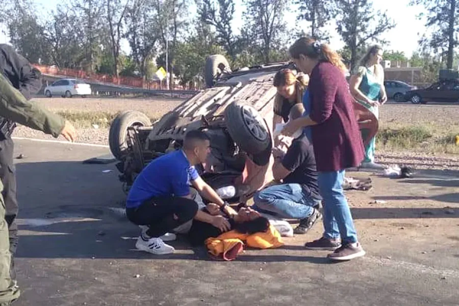 Dos mujeres y dos niños protagonizaron este sábado a la mañana un aparatoso accidente en Maipú. El hecho se produjo en el Acceso Este, a la altura de la localidad de Fray Luis Beltrán, luego de volcar en el auto en el que viajaban los cuatro ocupantes.